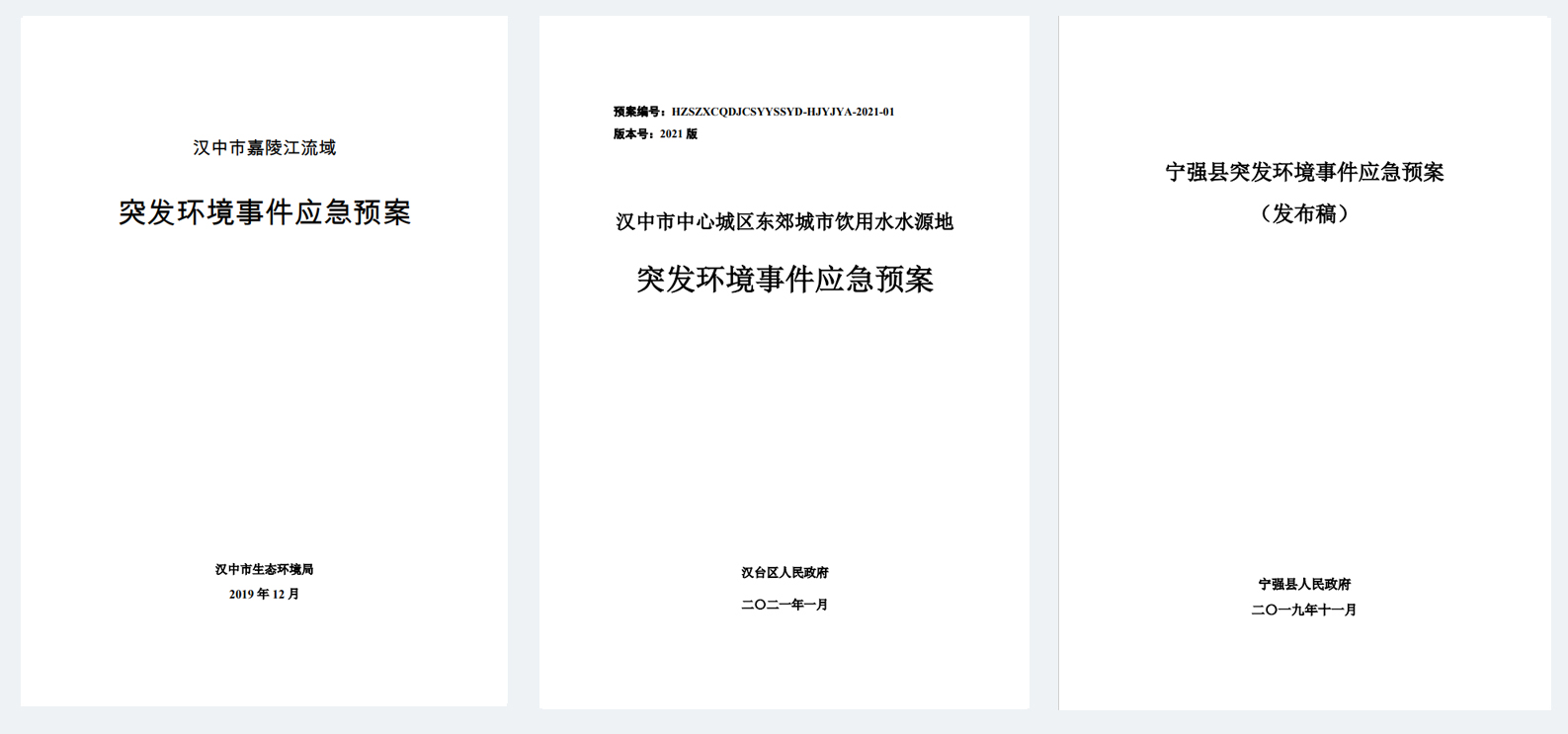 (2)行政區(qū)域類(lèi):漢中市突發(fā)環(huán)境事件應(yīng)急預(yù)案、勉縣突發(fā)環(huán)境事件應(yīng)急預(yù)案等;